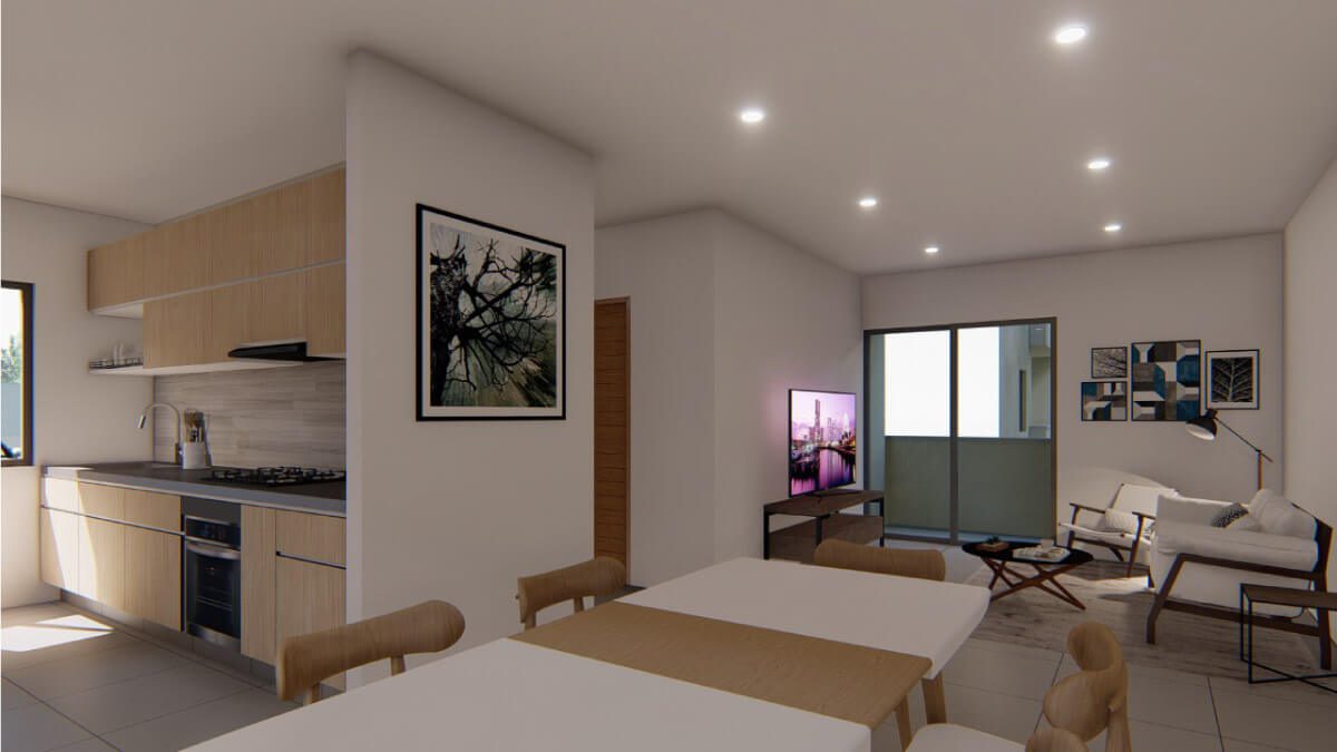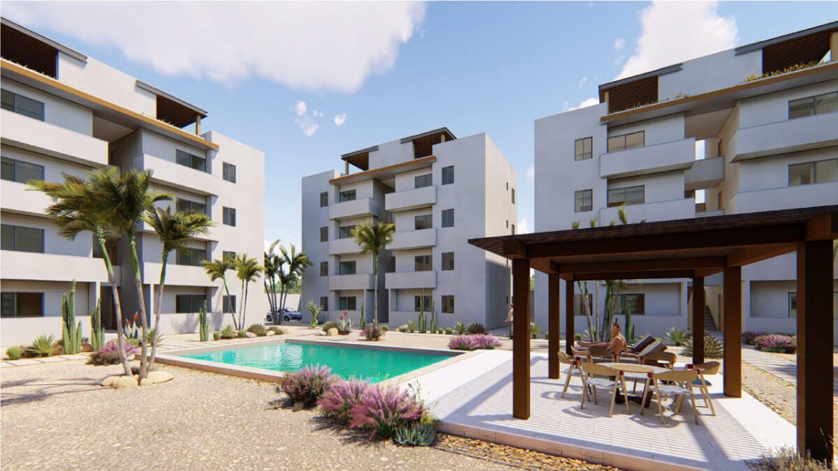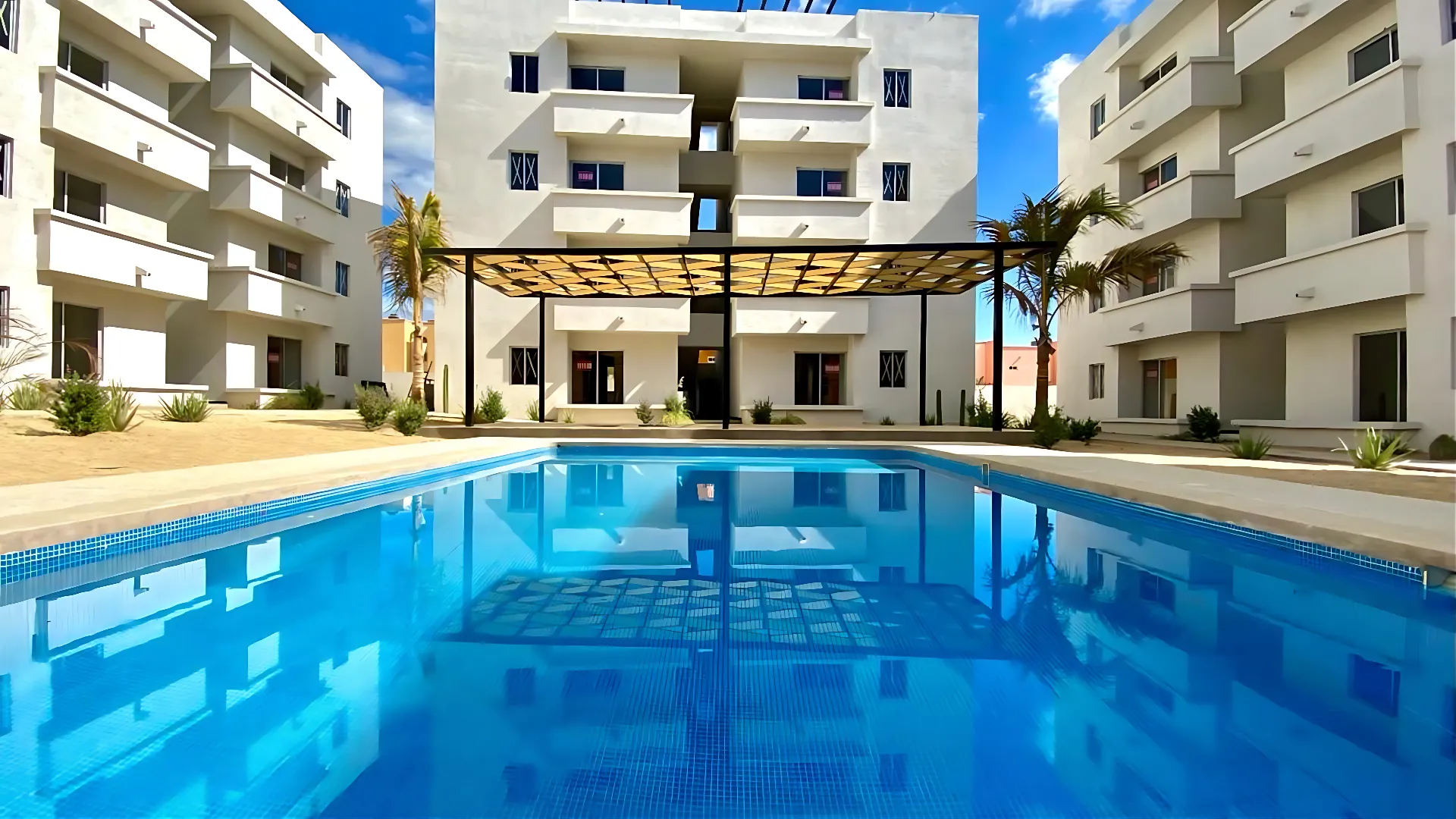 Podrás elegir entre departamentos de una o dos recámaras, balcones y un baño, e incluso tener un Penthouse con rooftop privado de 62m2 con pergolado y vista al mar.